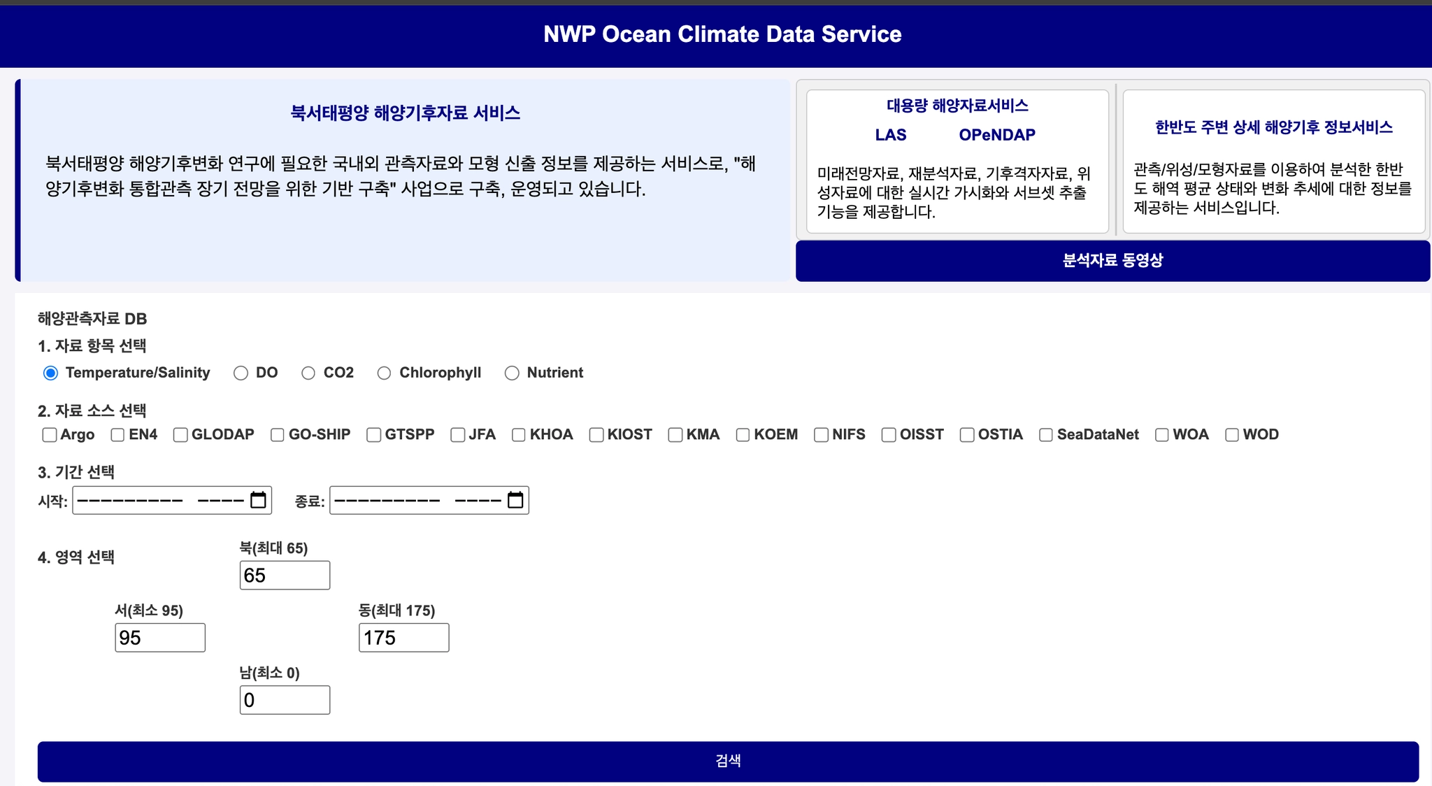북서태평양 해양기후 자료 서비스